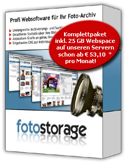 fotostorage ermöglicht es Ihnen, Ihre Bilderdatenbank und Ihre professionelle Internetpräsenz in einer einzigen mächtigen Seite zusammenzufassen und ohne zusätzliche Software von jedem Ort der Welt aus zu erweitern und zu verändern.